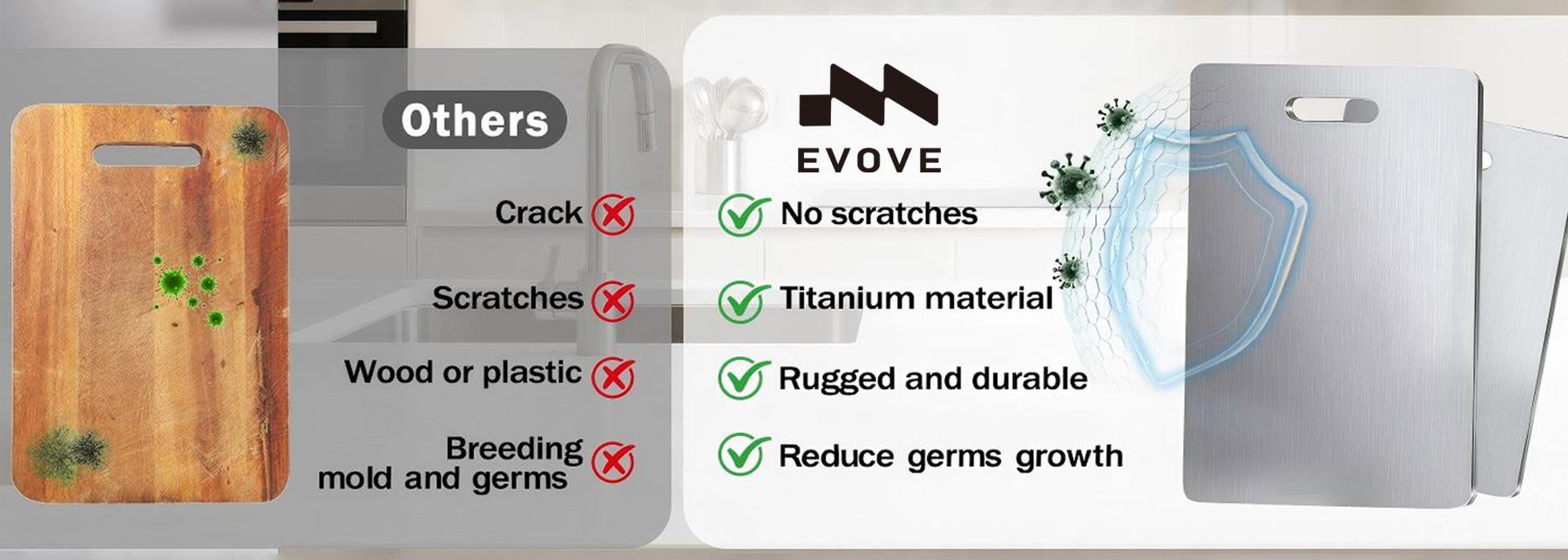 Experience Unmatched Durability And Cleanliness With Evove Titanium Cutting Board