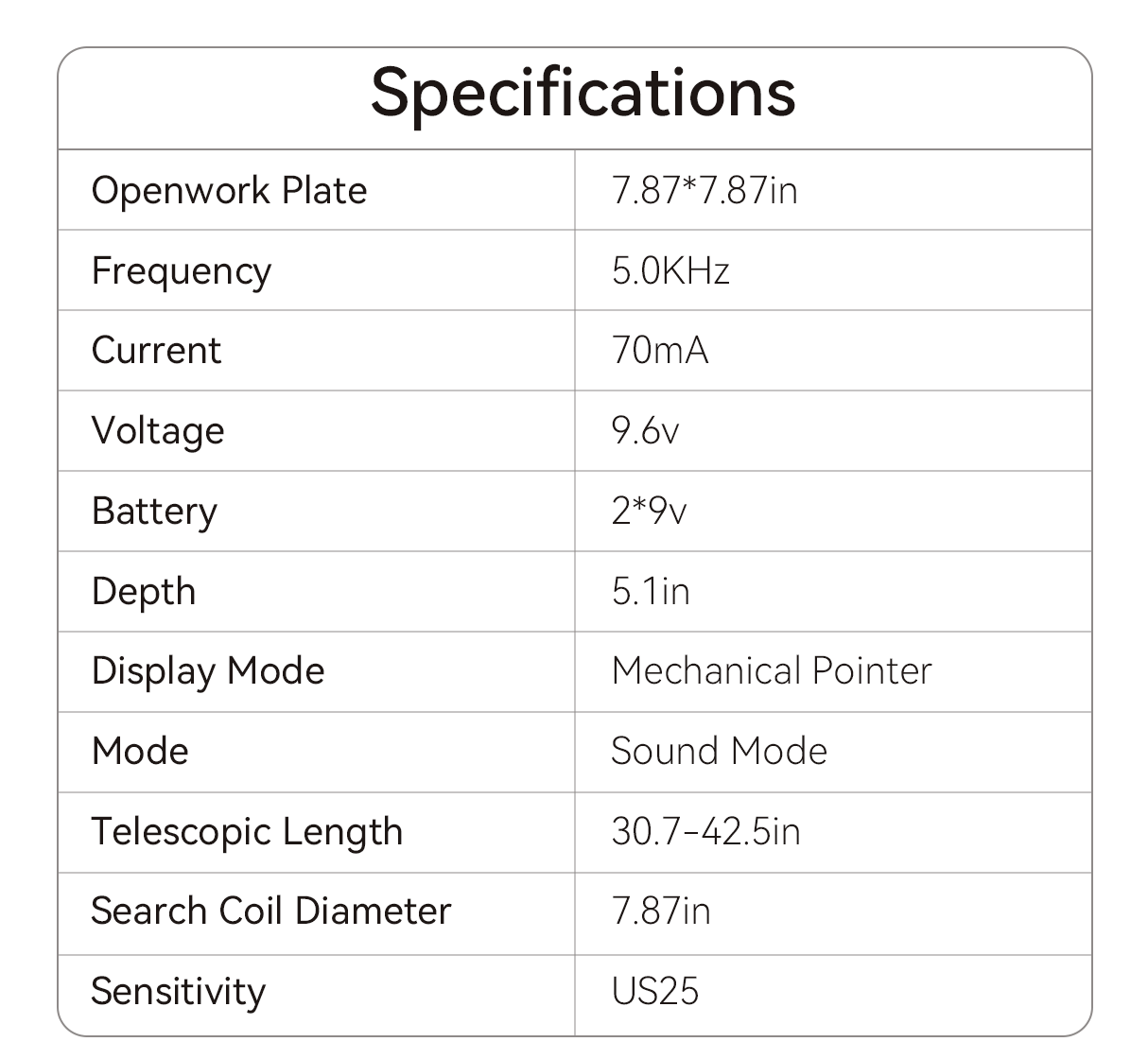 This unit features a superior discrimination mode capable of accurately distinguishing and locating the five major metal groups: Gold, Iron, Silver, Aluminum, and Bronze. This opens up a wider range of treasure hunting for you, easily handling the search for lost coins, jewelry, or valuable industrial targets.