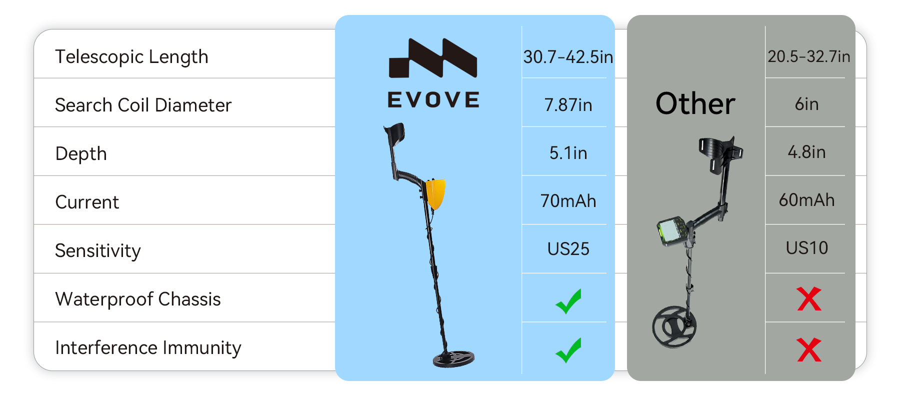 That belief led to Evove. The brand promises to use reliable tech, like smart chips and fully waterproof design, to make metal detecting precise, deep, and unrestricted. Its mission is to bring the genuine joy of discovery to all enthusiasts.
